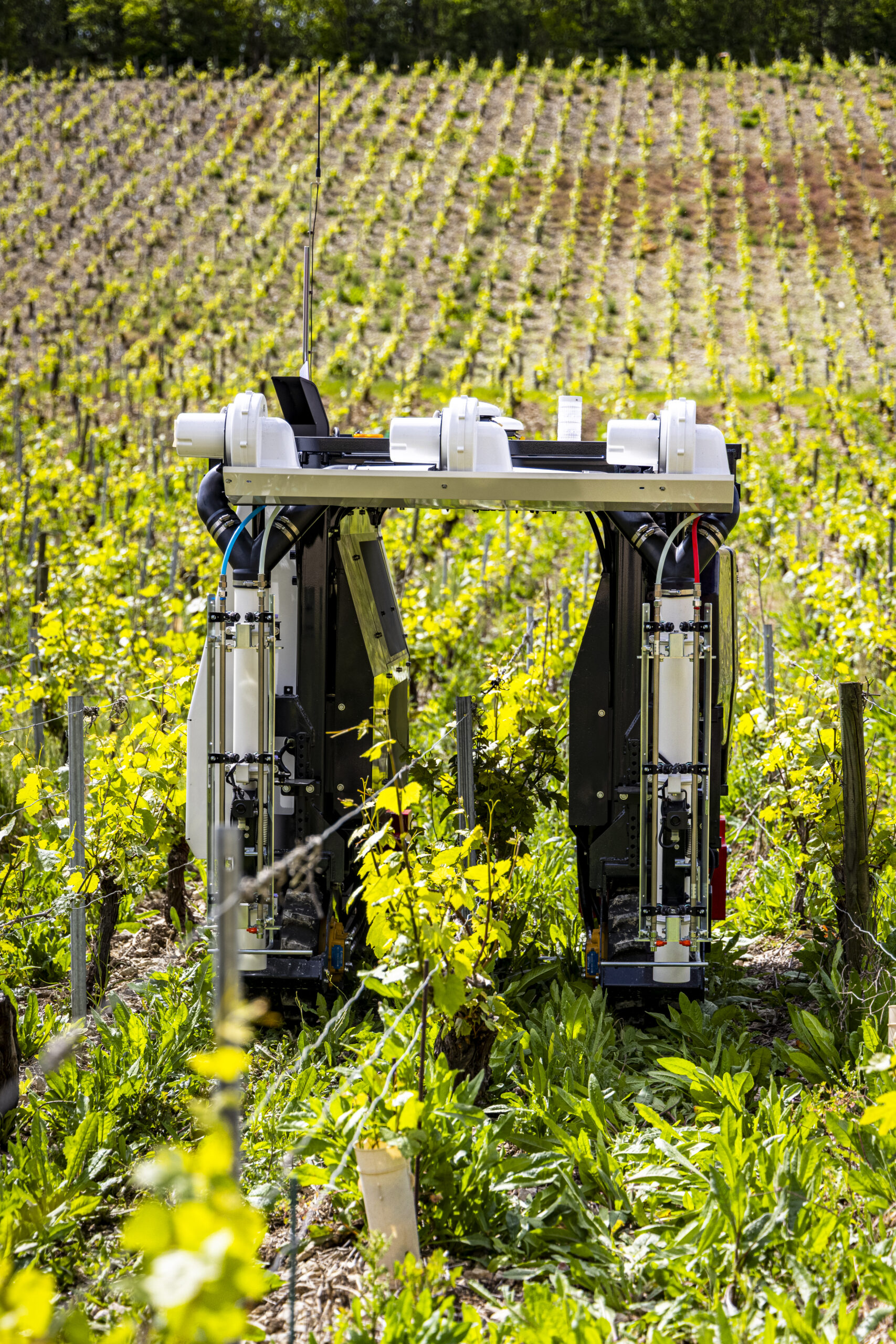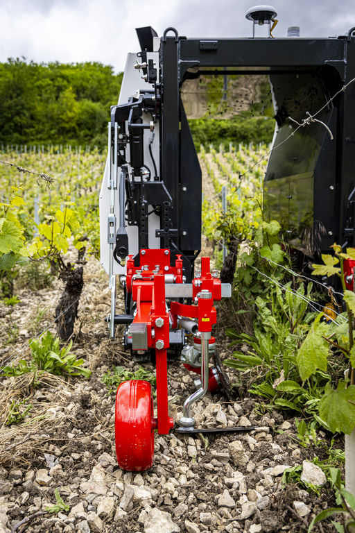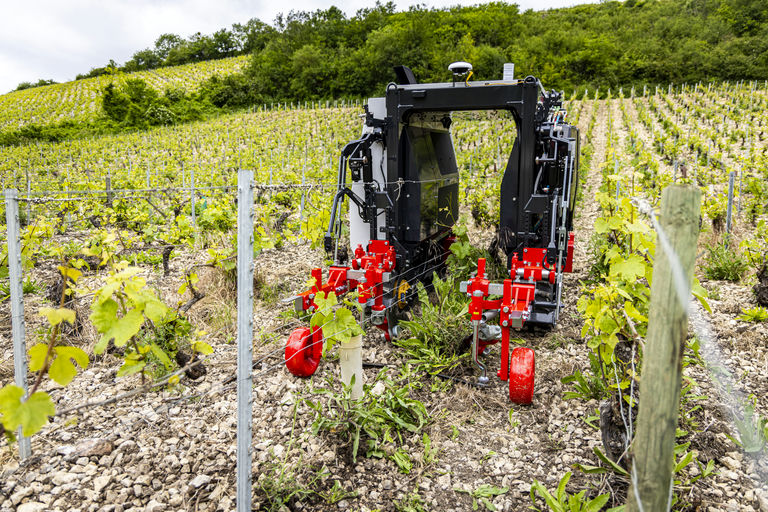 Le YV01 est un robot autonome sur chenilles conçu pour la pulvérisation, le travail et l’entretien du sol dans les vignobles.