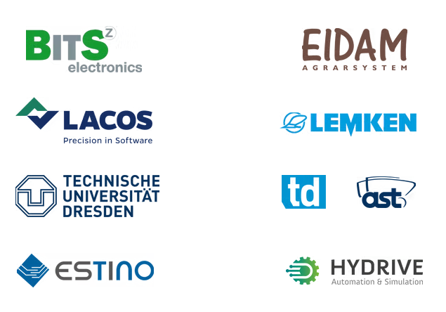 Partners: BITSz Electronics GmbH, Eidam, Estino GmbH, Fraunhofer IVI, Fraunhofer IWU, Hydrive Engineering GmbH, Welp Group (IndiKar Individual Karosseriebau GmbH), LACOS GmbH, LEMKEN GmbH & Co. KG, TU Dresden – Agricultural Systems Technology, TU Dresden – Technical Design, University of Leipzig – Information Systems.
