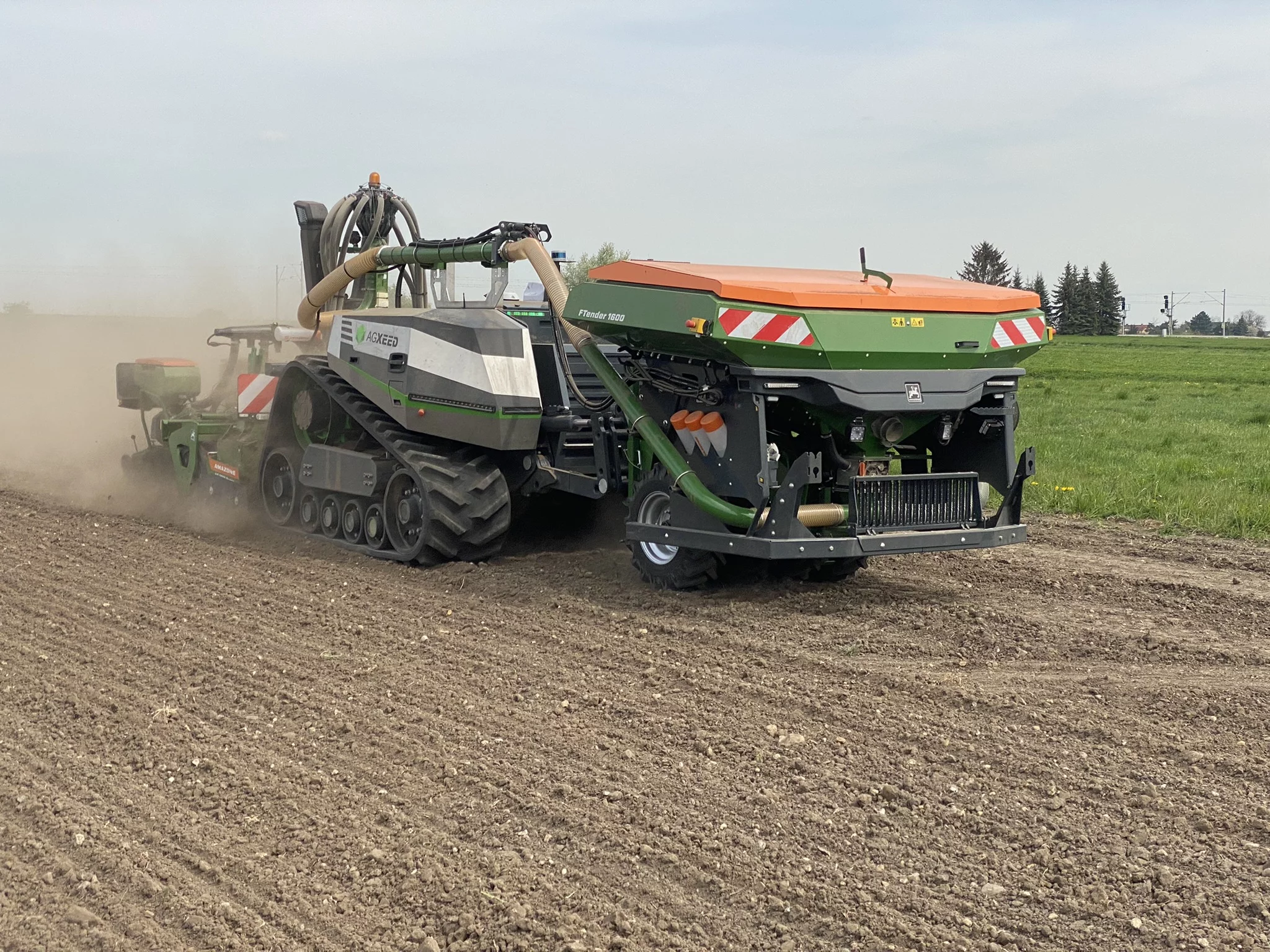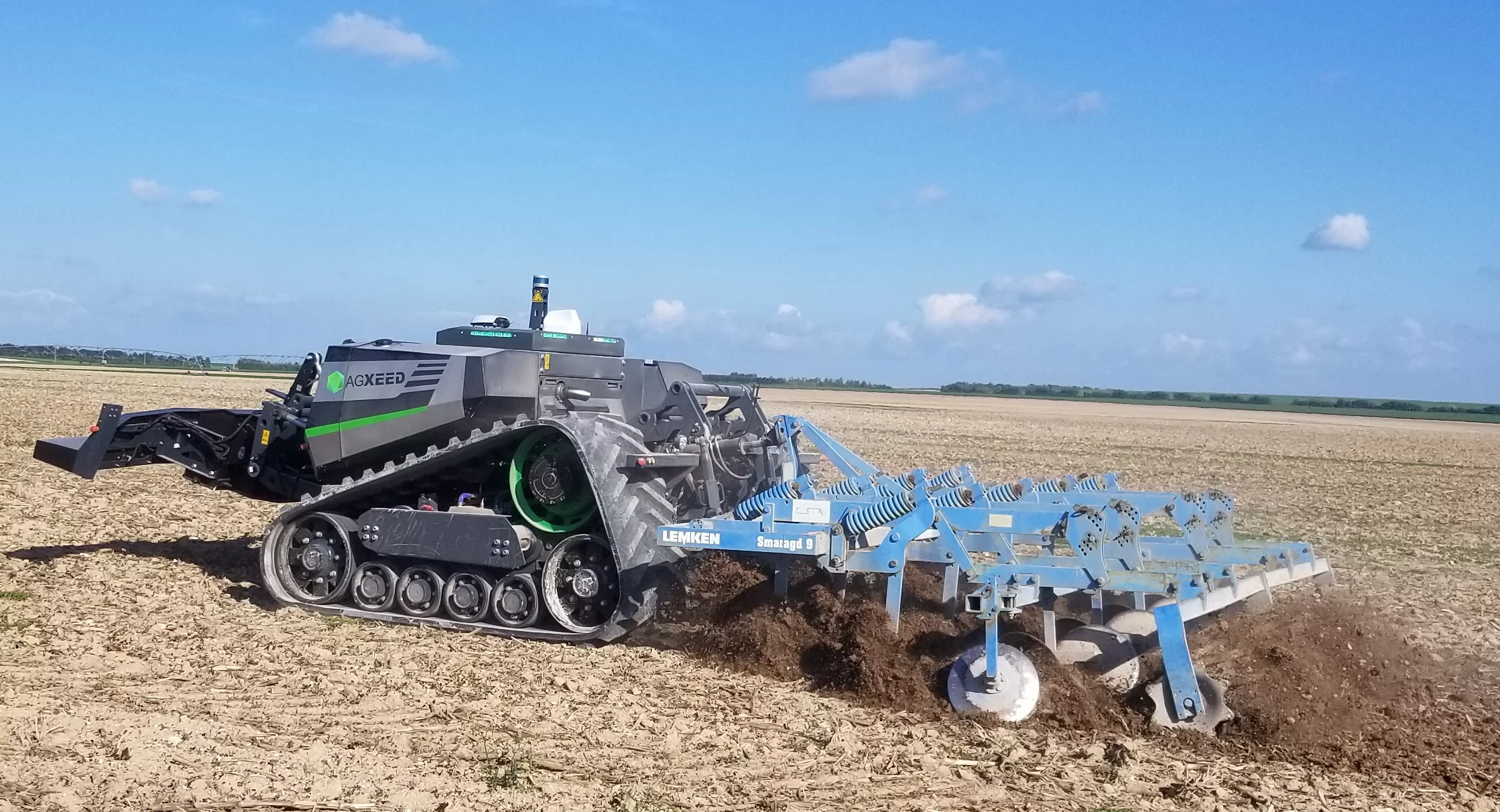 The AgBot 5.115T2 is ready for hours of high capacity work on broad arable land. The AgBot has soil preserving tracks and an adjustable track width.