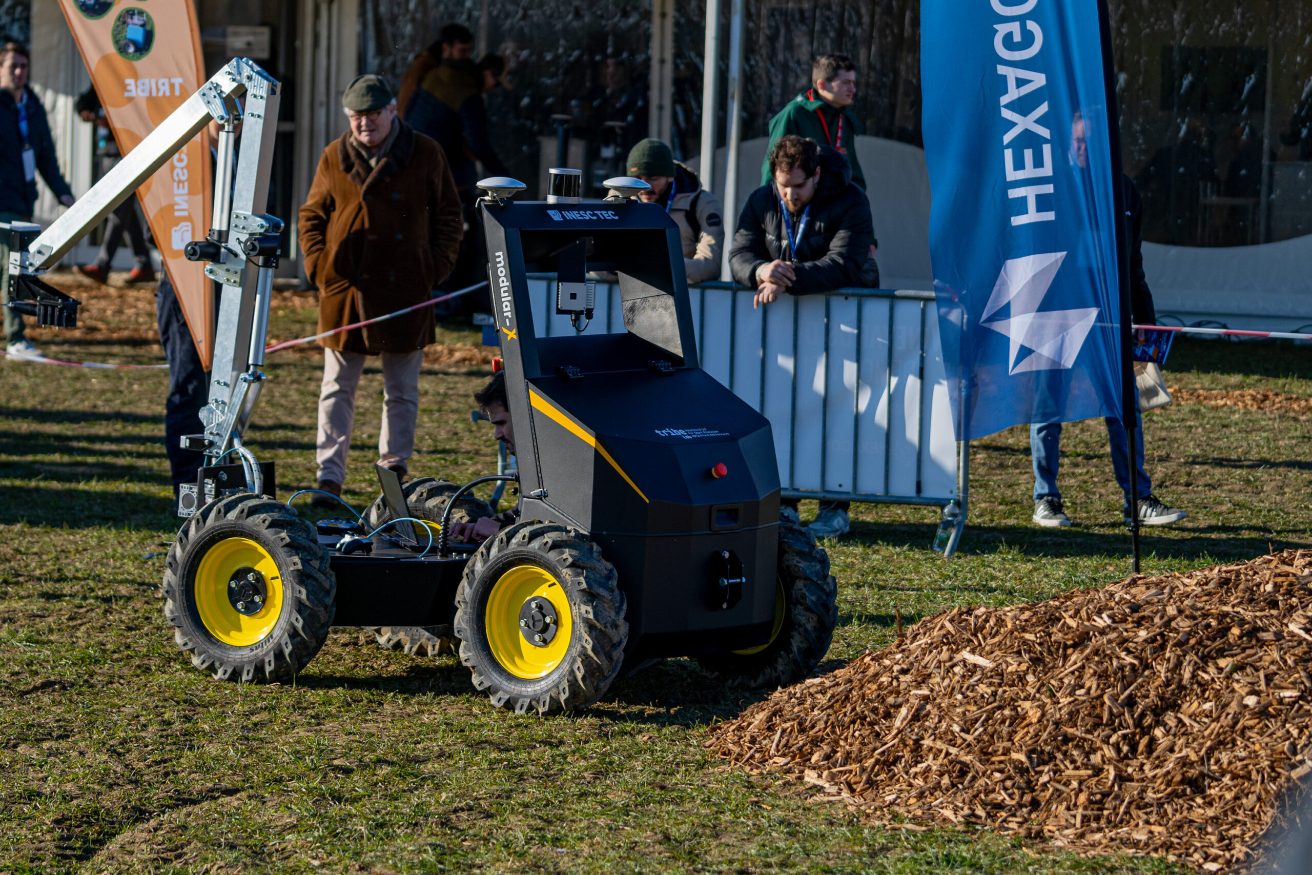 At WORLD FIRA 2025, INESC TEC presented both the original Modular-E and a new version of the robot. This new version is slightly larger, more robust, and equipped with a manipulator, making it suitable for forestry operations. Despite these upgrades, the new version maintains the Modular- E’s core modularity, enabling the attachment of various tools for different purposes.